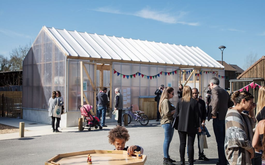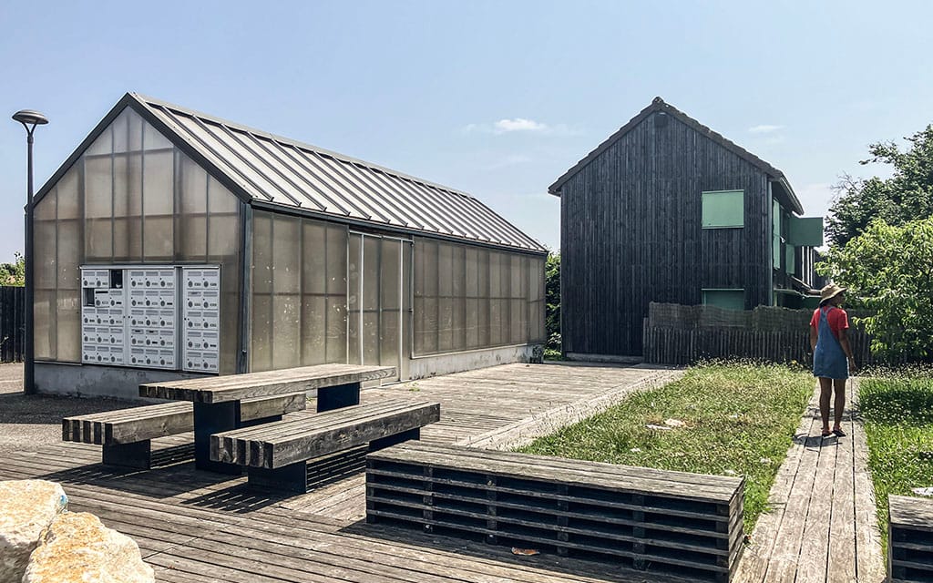 Une petite serre est aménagée – lieu abritant les boîtes aux lettres – autour d’une parcelle de jardinage commune, afin de créer une polarité centrale au sein de l’opération.